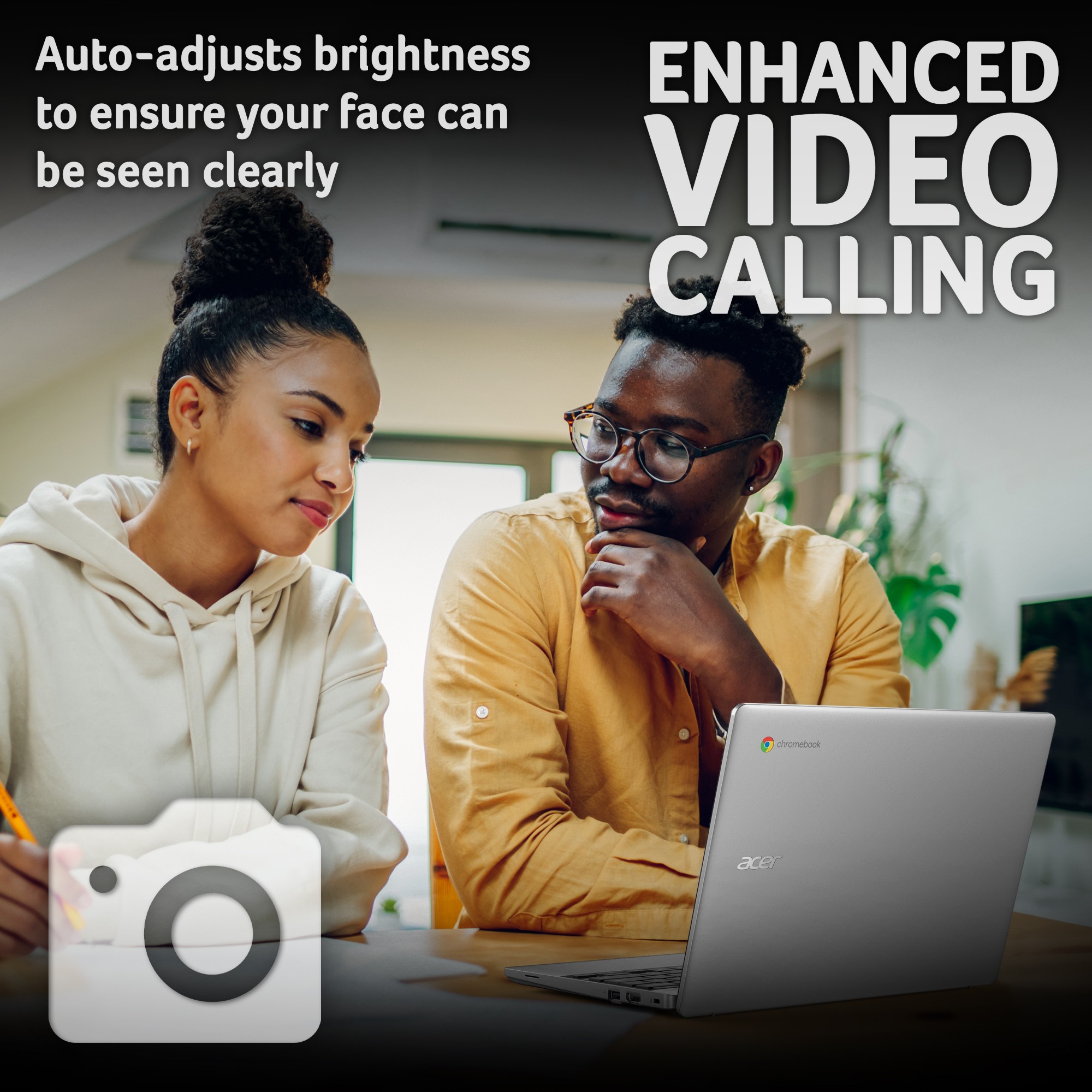 Enhance your video presence with the HD HDR webcam, featuring a camera shutter for protecting your privacy. With Acer TNR solution and Facial Auto-exposure technologies, redefine your video calling experience.