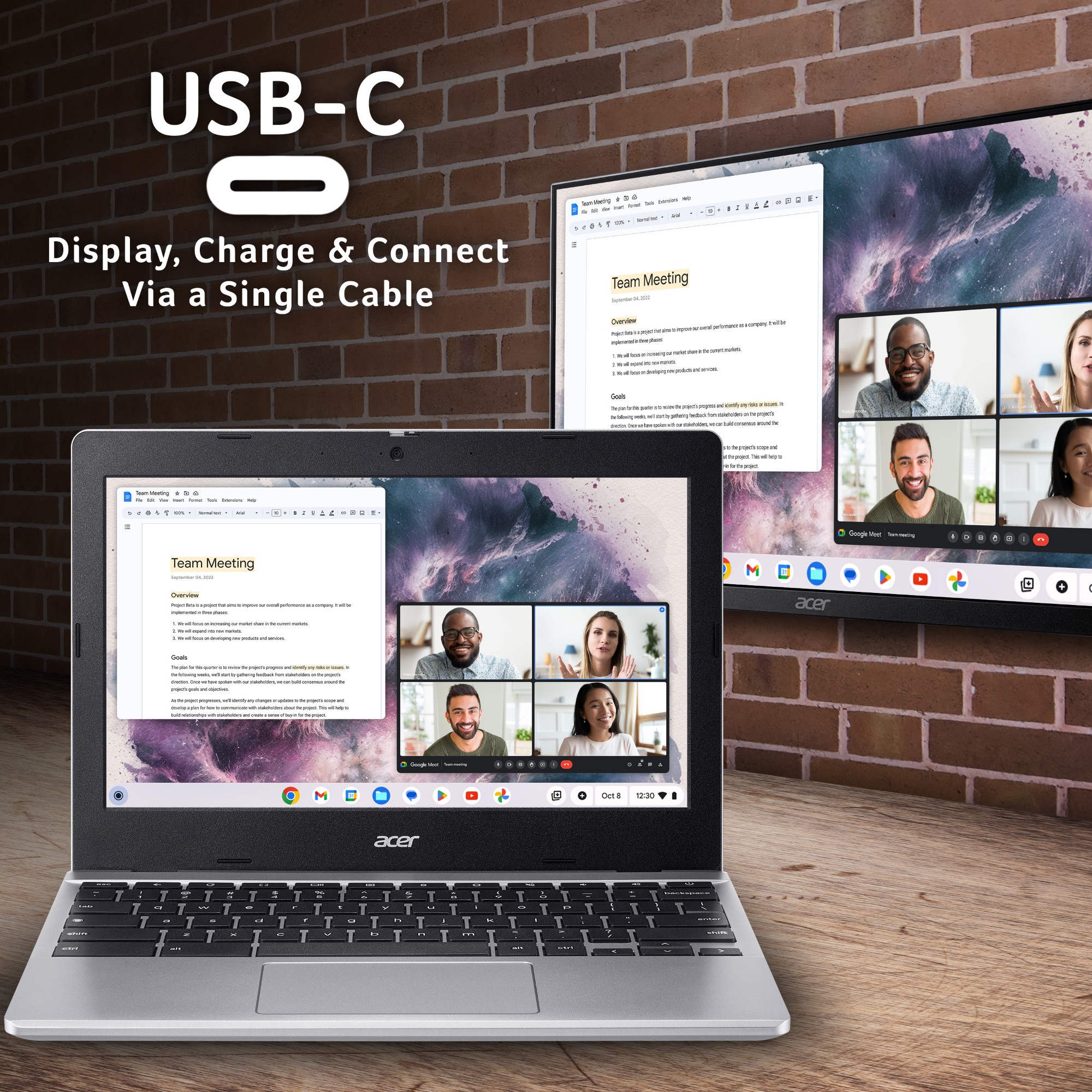 Concerned with compatibility? No worries. Chromebooks work with Microsoft 365®4. Whether it’s Word, Excel® or PowerPoint®, you can easily find the apps on the web. With Google Docs, Sheets, and Slides also included, Chromebooks are well equipped to help you be productive and get your work done.