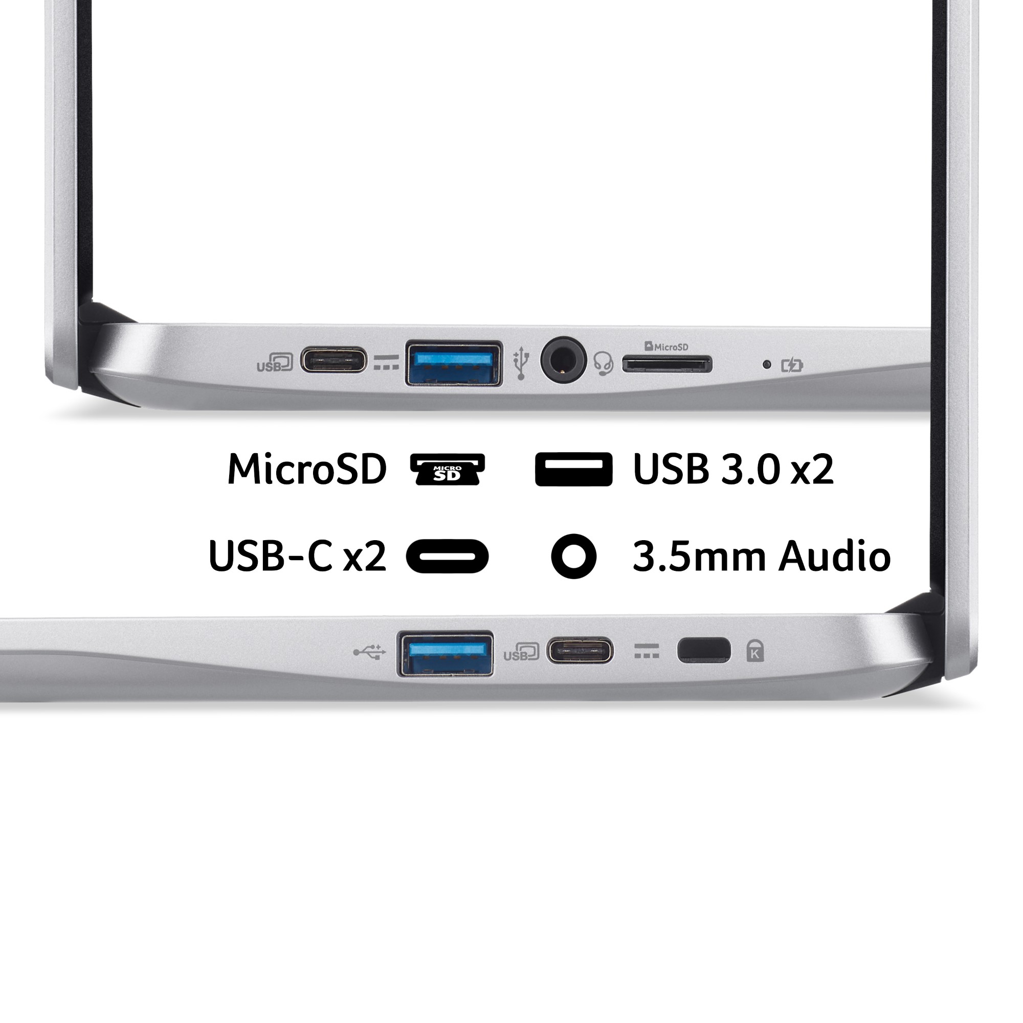 Two USB Type-C ports for ultra-quick data transfer, video streaming, and battery charging. The reversible USB 3.1 Type-C™ connector is the same at both ends and on both sides, so it’s easy to attach. USB 3.1 is 10 times faster than USB 2.0. In addition to the two USB 3.1 Type-C ports, there are also two USB 3.0 Type A ports, and a microSD slot for extra storage.