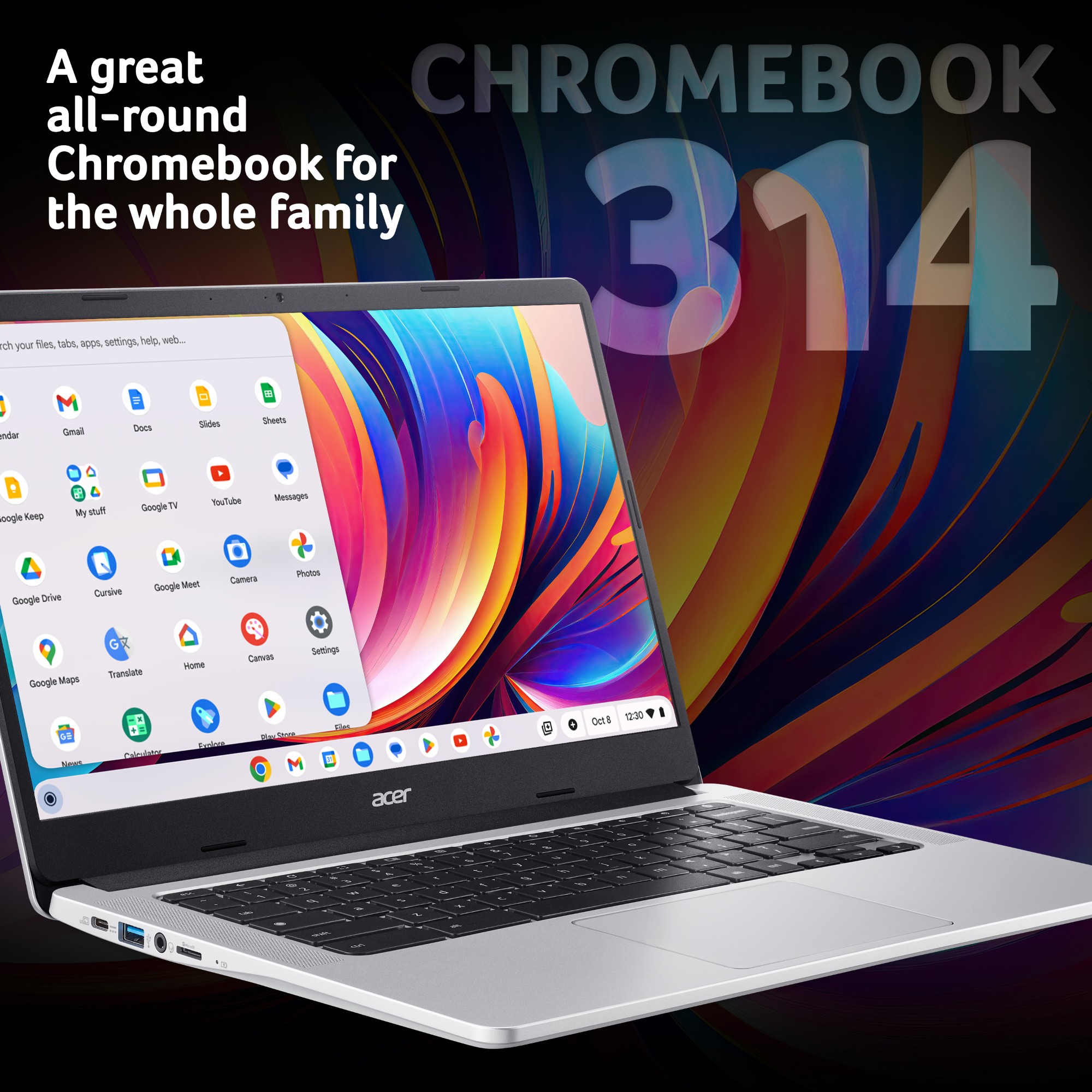 Designed for portable convenience, this Chromebook™ is smaller than a sheet of A4 paper and weighs just around 1 kg. Slide it in to small bags and take it out when you need it.