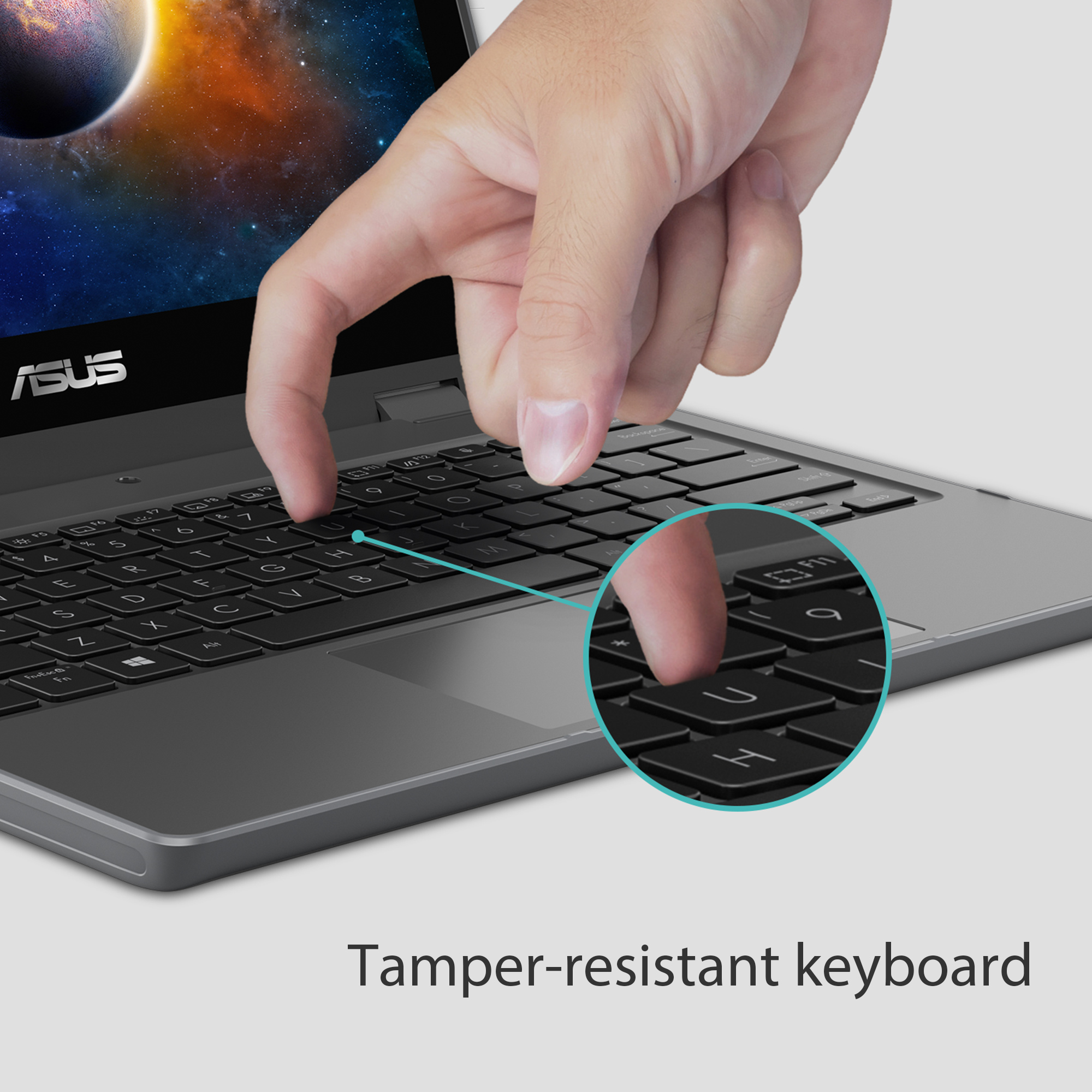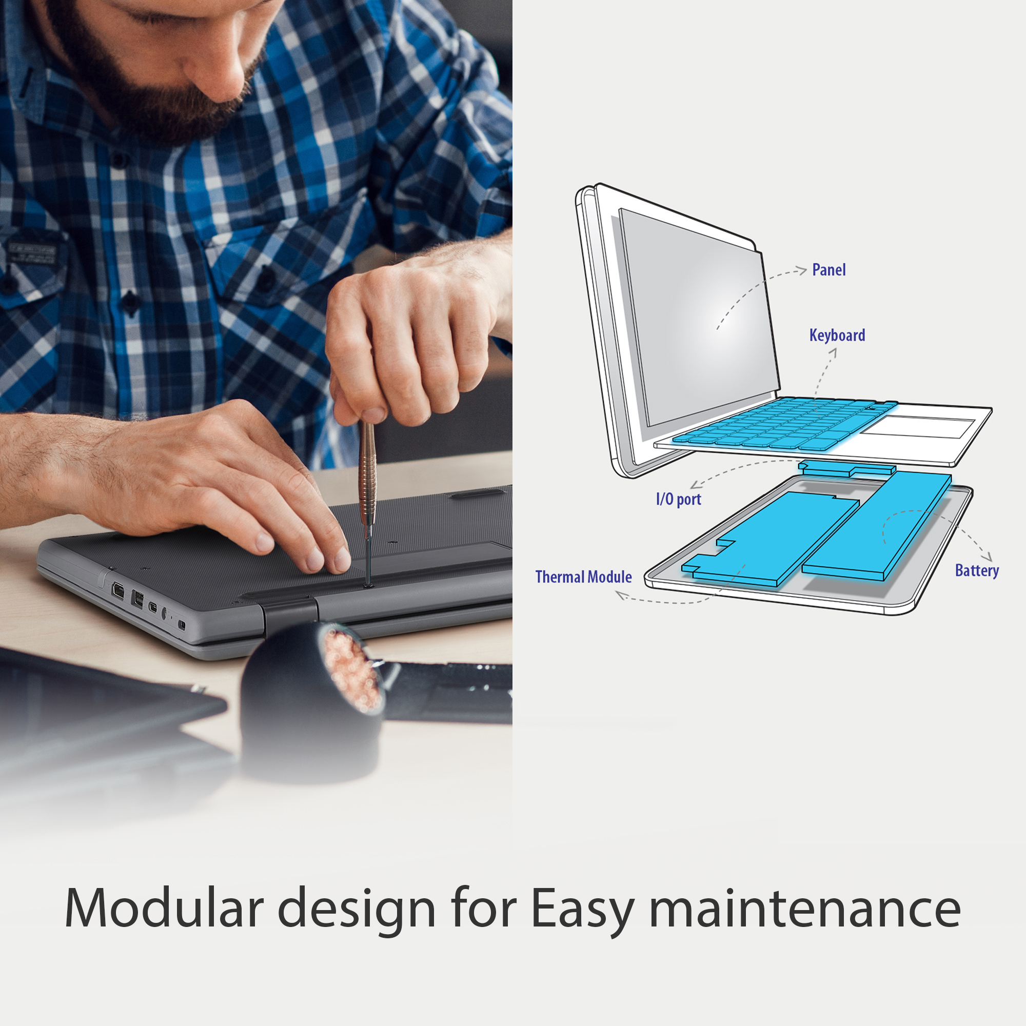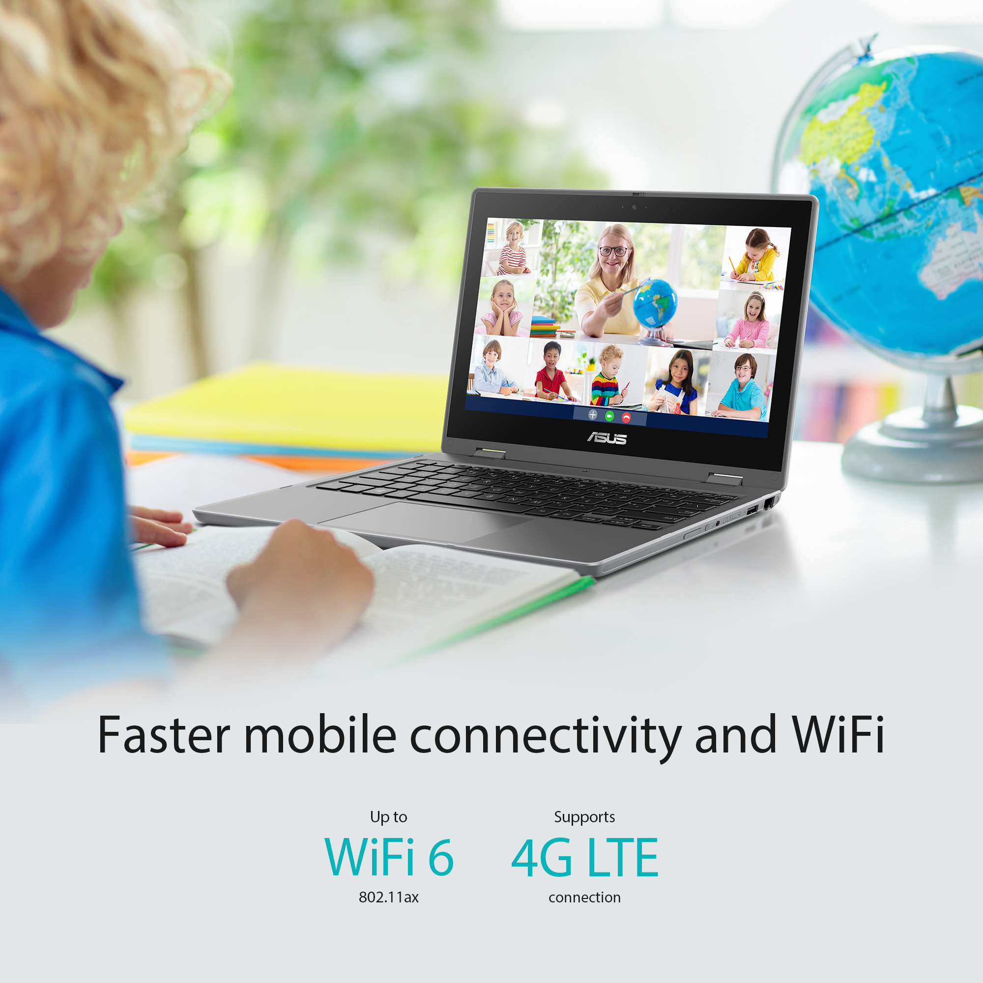 ASUS BR1100F is the best learning companion for students of all ages, with a tough, innovative design that’s made to last. As well as a versatile touchscreen display and stylus, there’s also a 360° hinge and a world-facing camera. It’s packed with clever protective features, including an all-round rubber bumper, spill-resistant keyboard and ultratough hinge. BR1100F also supports up to WiFi 6 and 4G LTE for fast connectivity, and has AI-powered noise-canceling technology for high-quality remote learning and conferencing, and a modular design makes it easy to service, BR1100F is ready for anything.