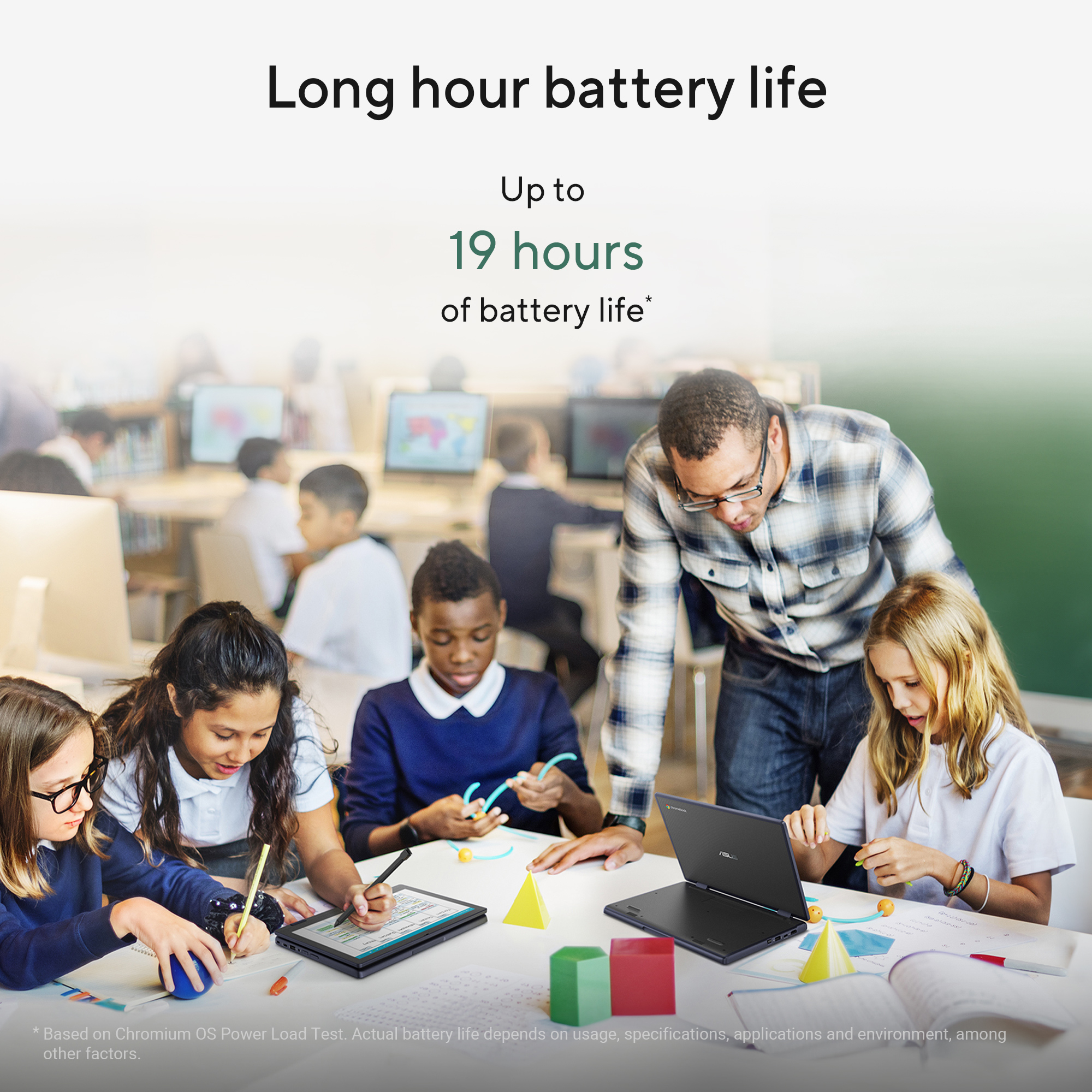 ASUS Chromebook CZ11 is an excellent study companion for K-12 students, with a portable and durable design that guarantees enduring value and empowers engaged learning — anywhere. Its 180° lay-flat design, coupled with an 11.6-inch display incorporating TÜV-certified technology1, enhances the visual experience while emphasizing eye protection. The series boasts up to 19 hours of battery life2 for uninterrupted use throughout an entire day of classes, empowering students to extend their learning beyond traditional limits.
