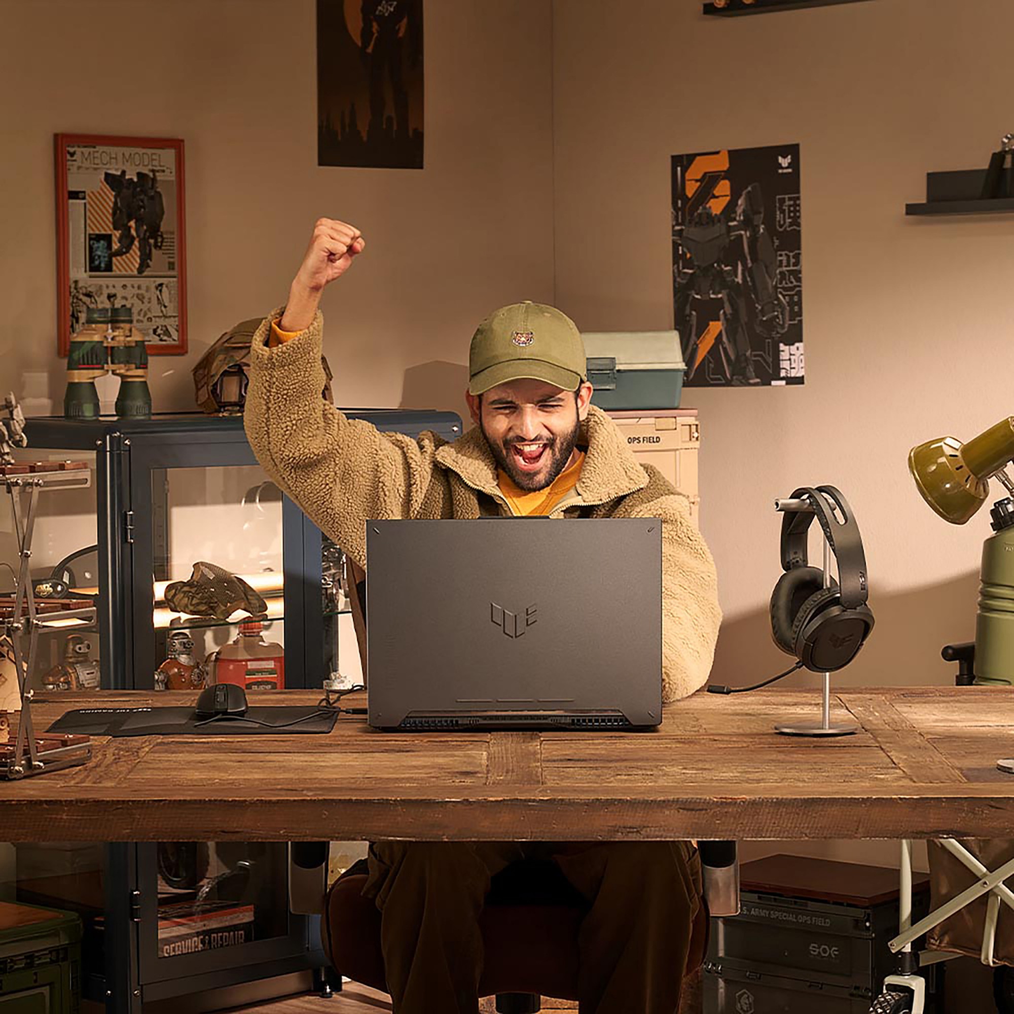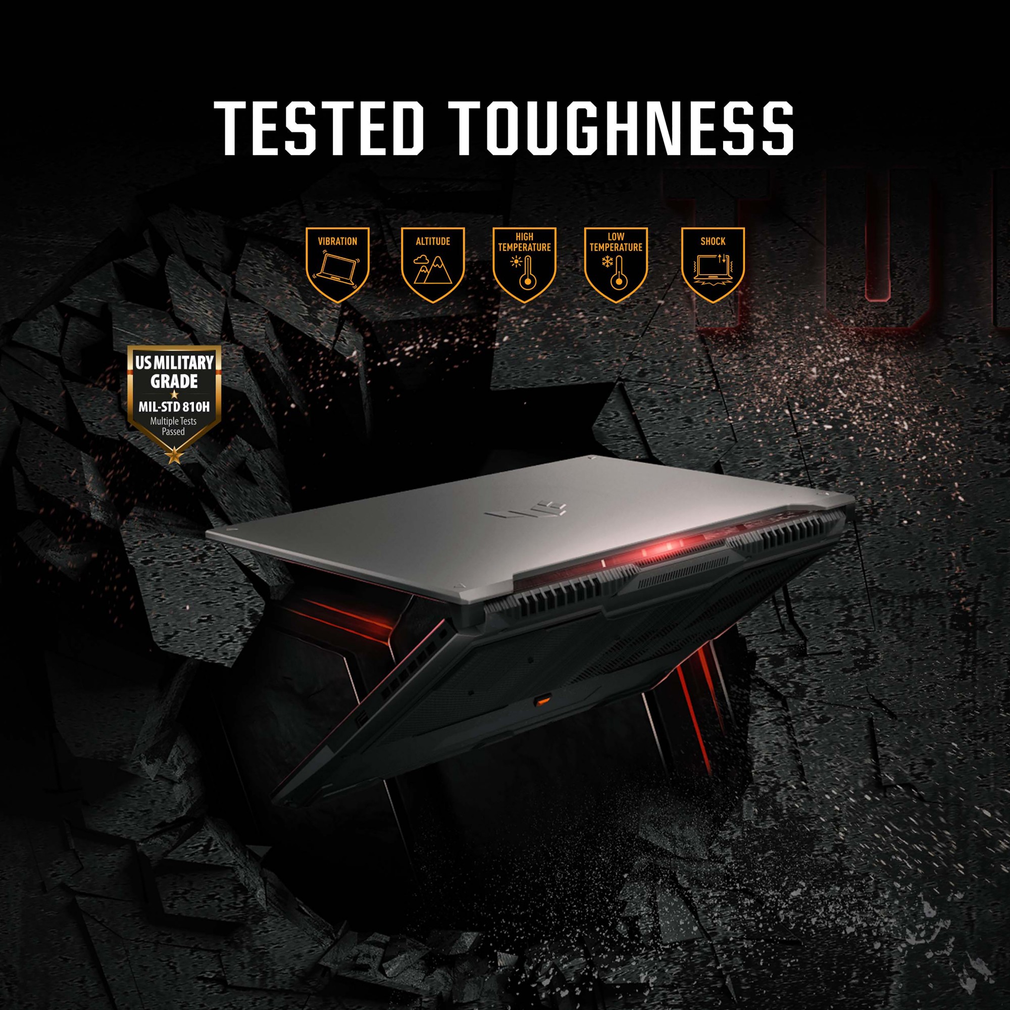 The 2024 TUF Gaming A16 retains its classic TUF styling, with a few new touches. The Mecha Grey variant sports an embossed TUF logo, while the Jaeger Grey editions have a stylish laser engraved logo. Four small triangles frame the corners of the lid, and subtle TUF references appear on the keyboard deck and trackpad.