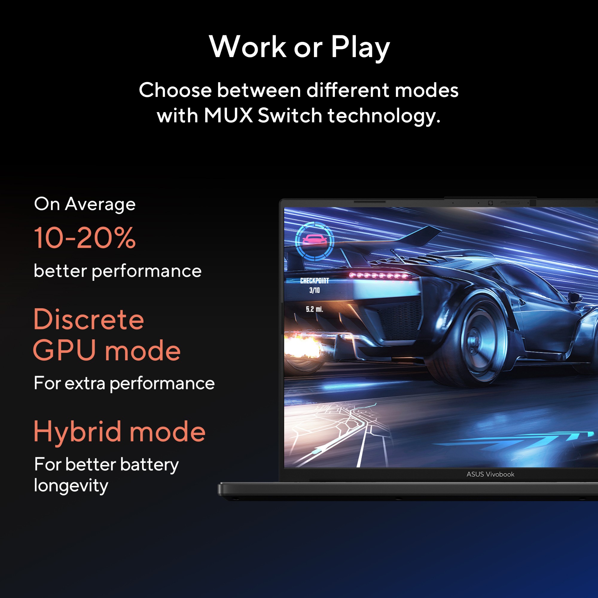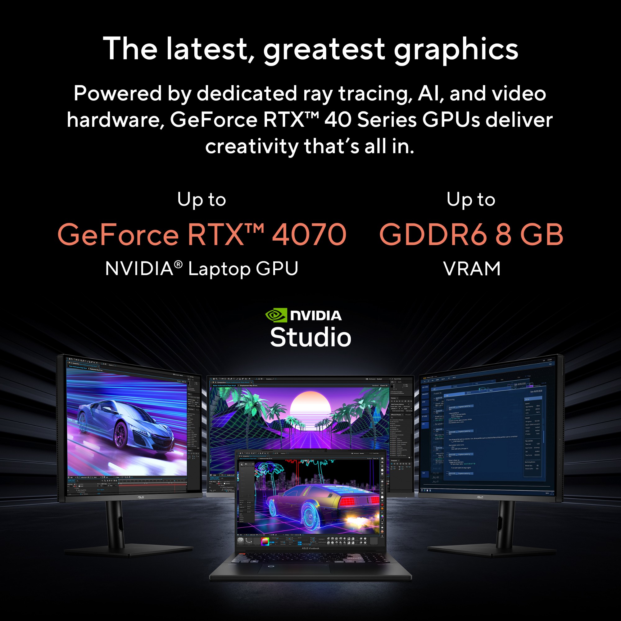 Get the ultimate creative experience with ASUS Vivobook Pro 16X OLED! It features the world’s leading 16-inch 3.2K 120 Hz OLED Dolby Vision display, the Intel® Core™ i9-13980HX processor and an NVIDIA® GeForce RTX™ 4070 Laptop GPU — empowering maximum performance for any task, no matter how tough. This powerhouse is chilled by ASUS IceCool Pro thermal technology, with dual fans and four vents to keep it cool and quiet. It’s also loaded with superb connectivity, including dual Thunderbolt™ 4 ports and a standard SD card reader for easy file transfers. With an onboard MUX switch and multi-dimensional Dolby Atmos audio built right in, Vivobook Pro 16X OLED also delivers maximum productivity and entertainment. Get ready to create!