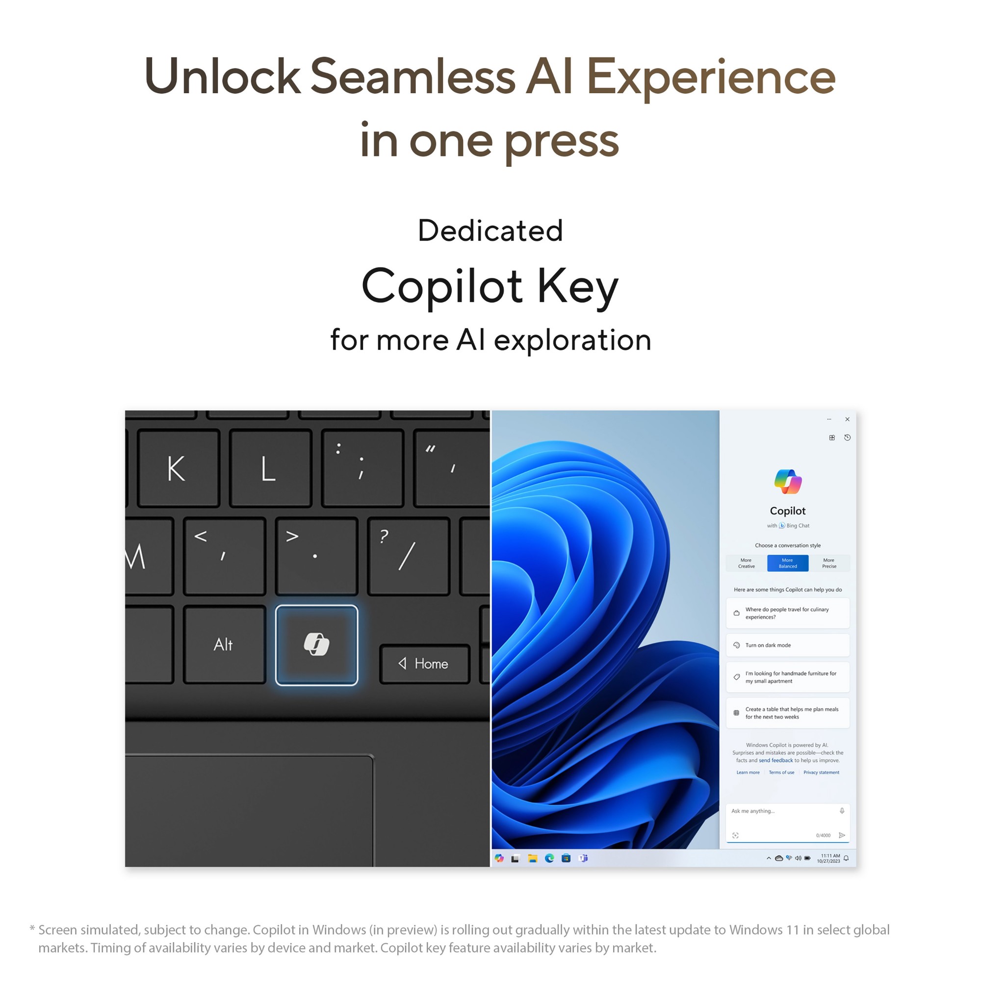 ASUS Vivobook S 15 OLED redefines your laptop experience by integrating cutting-edge technology with a minimalist design. It boasts an AMD Ryzen™ 9 H processor that provides top performance , combining AMD Ryzen™ AI accelerator, and a 1-sec Copilot activate key4 for intelligent workload optimization. Despite its slim profile of 1.39 cm and lightweight of 1.5 kg1, it offers 14+ hours battery life3 and a stunning 3K 2880x1620 ASUS Lumina OLED display. This laptop is designed to meet your modern needs. Plus, it features an ergonomic and customisable RGB keyboard, an extra-large touchpad, and an ASUS AiSense camera for better working and life experience. It’s the perfect companion for the modern lifestyle.