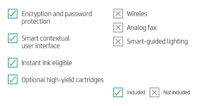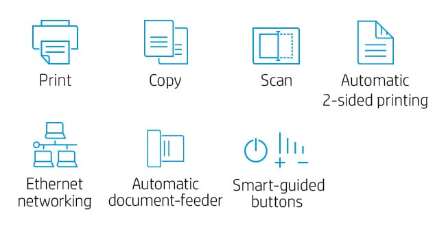 A high-productivity MFP with the fastest two-sided printing in its class,[1] an automatic feeder, and the time-saving HP Smart app.[2,3] Count on a worry-free experience with simplified setup.
