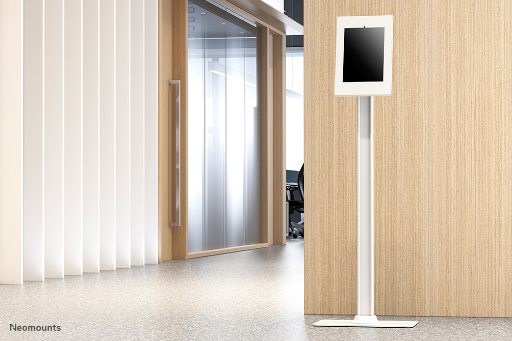 The Neomounts FL15-650WH1 is a tablet floor stand that can rotate 90° to switch between portrait and landscape orientation. The casing can be tilted up to 75° for comfortable viewing. The clever design includes six different tablet inlay panels making the tablet holder suitable for various 9,7-11" tablets*.